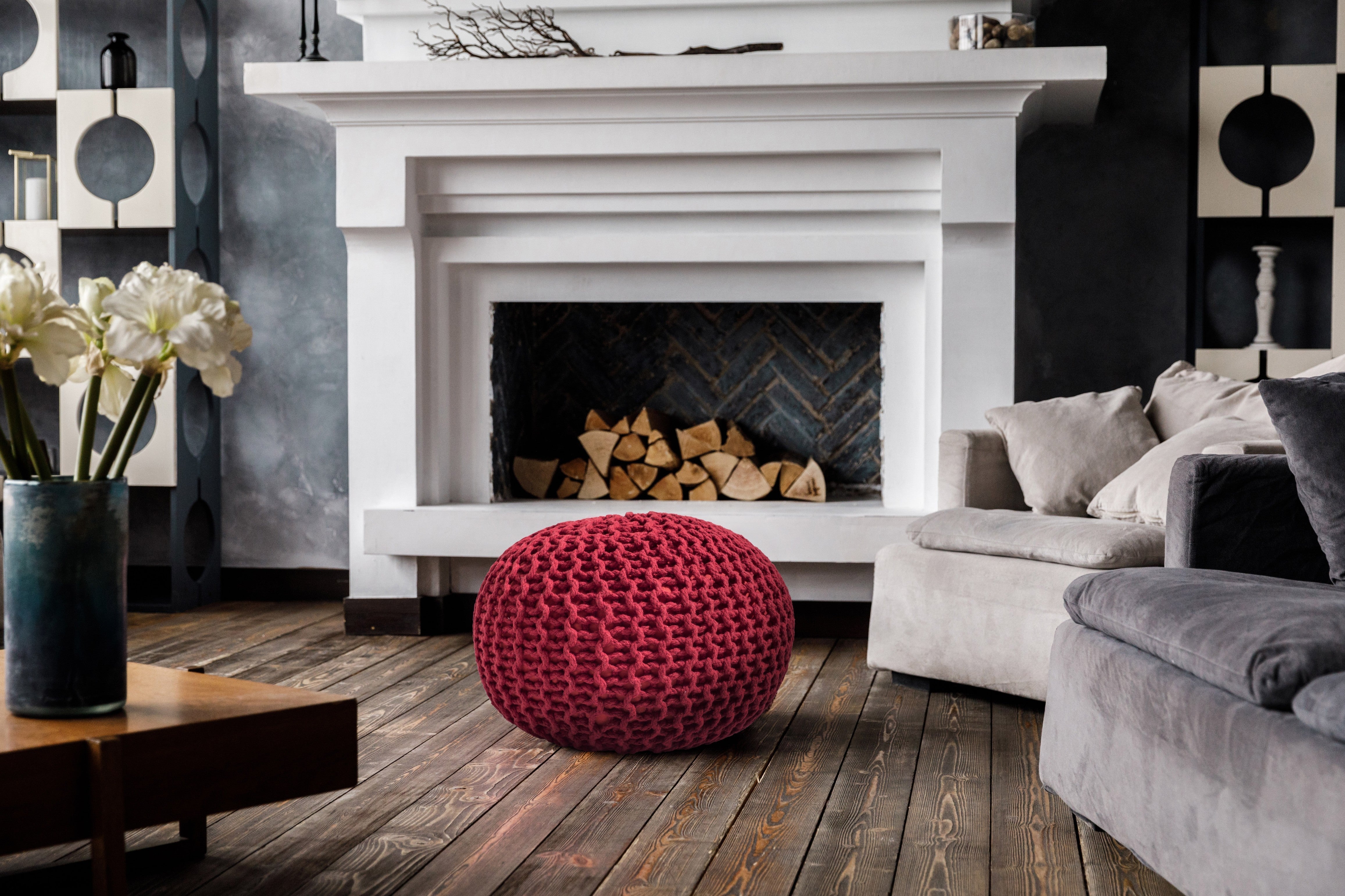 Audaz y vibrante, este puf de algodón rojo tejido a mano está elaborado con gruesos cordones dori trenzados, que ofrecen durabilidad y confort. Su intenso tono rojo simboliza calidez y energía, convirtiéndolo en una pieza decorativa impactante que llena cualquier espacio de carácter artesanal.