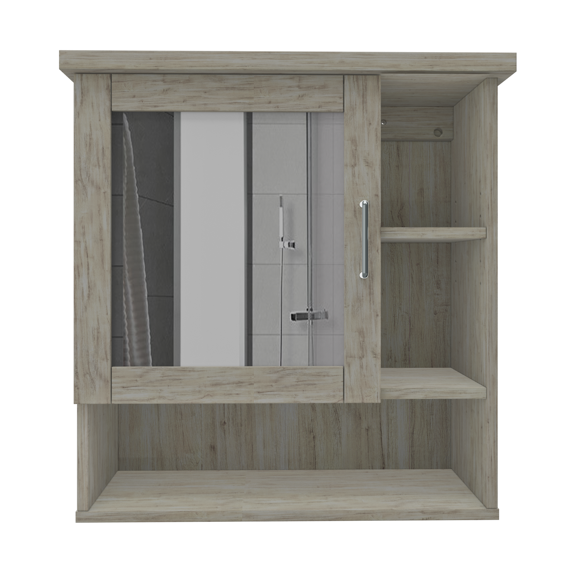 Agrega estilo y practicidad a tu baño con este elegante botiquín de pared de Myspace Furniture. Diseñado para baños modernos y funcionales, su estética limpia se combina con detalles útiles como estantes abiertos y una puerta con espejo. Ideal para mantener organizados los productos de uso diario sin sacrificar el diseño.