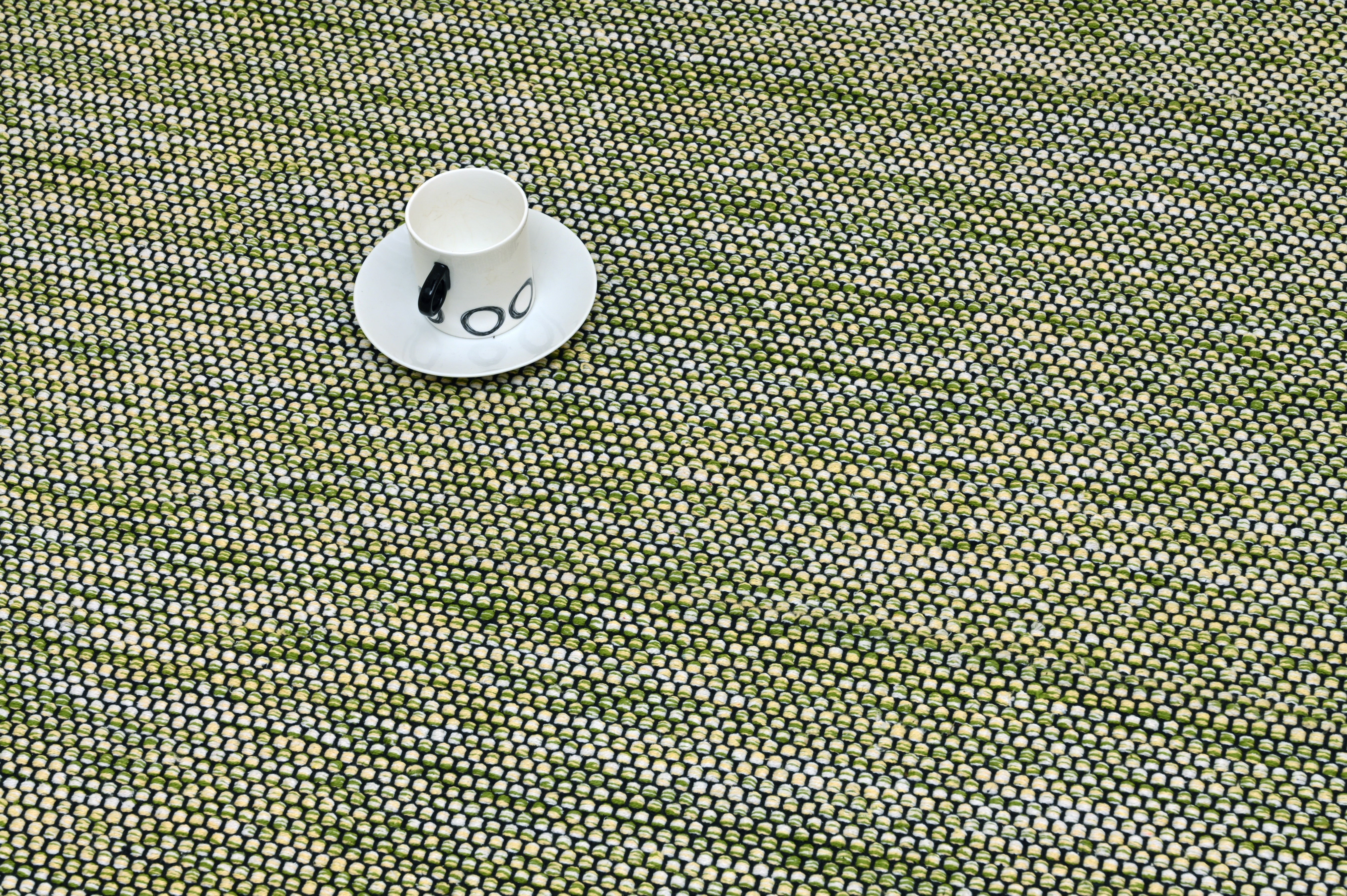 Inspirada en claros bosques al amanecer, la Alfombra de Algodón Verde con Flecos Negros combina un tejido verde jaspeado con flecos negros que aportan un encanto orgánico. Fabricada a mano en algodón transpirable, esta alfombra lleva la calma de la naturaleza a tu hogar, ideal para espacios que celebran la textura y el contraste sutil. 🌿🧵✨