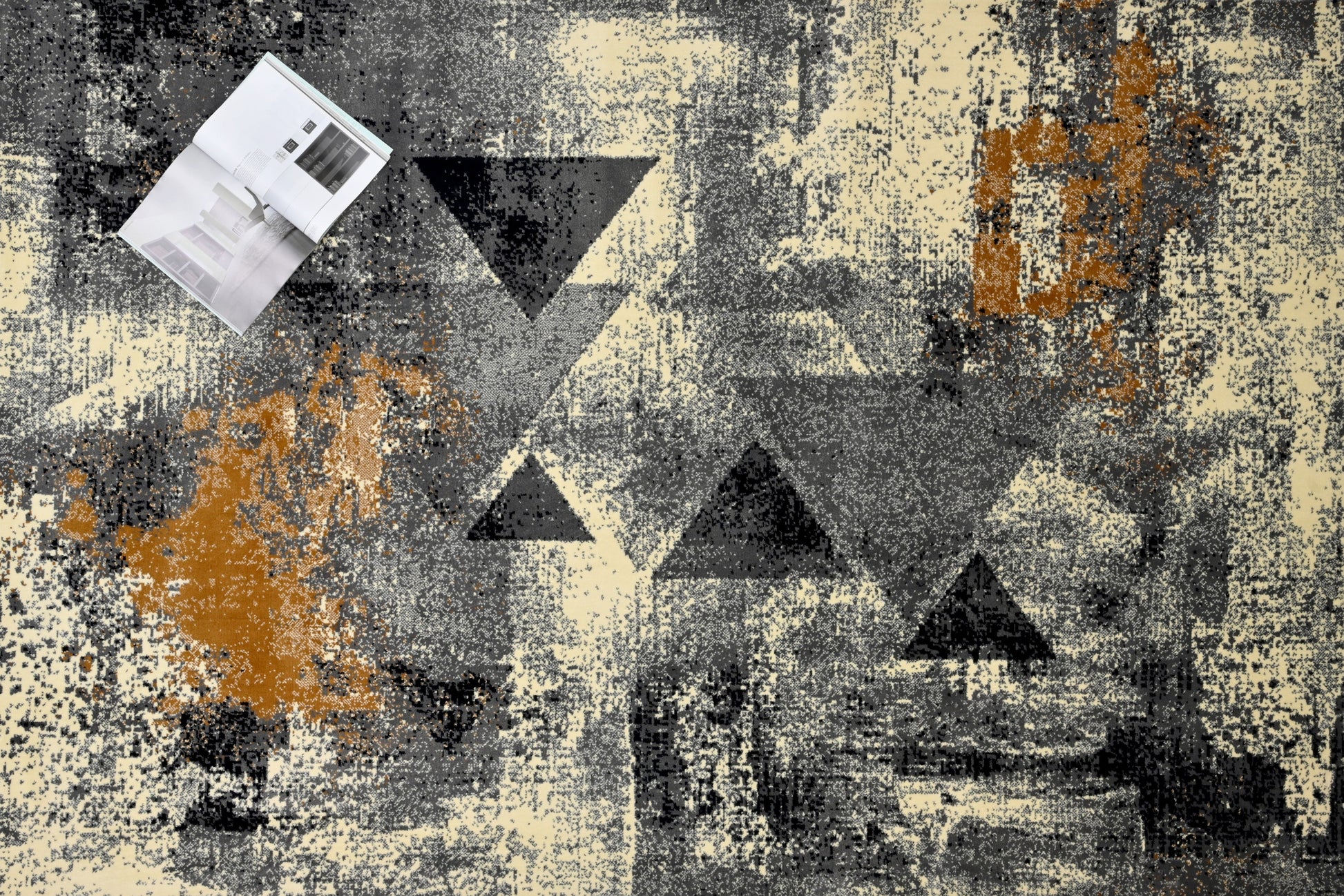 La combinación de formas abstractas y texturas desgastadas aporta un estilo contemporáneo sin perder elegancia atemporal. Diseñada para brindar funcionalidad y estética, esta alfombra resiste el uso diario en hogares activos. Su tejido plano la hace ideal para colocar debajo de muebles o combinar con otras alfombras sin recargar la decoración. 🖤🧡✨