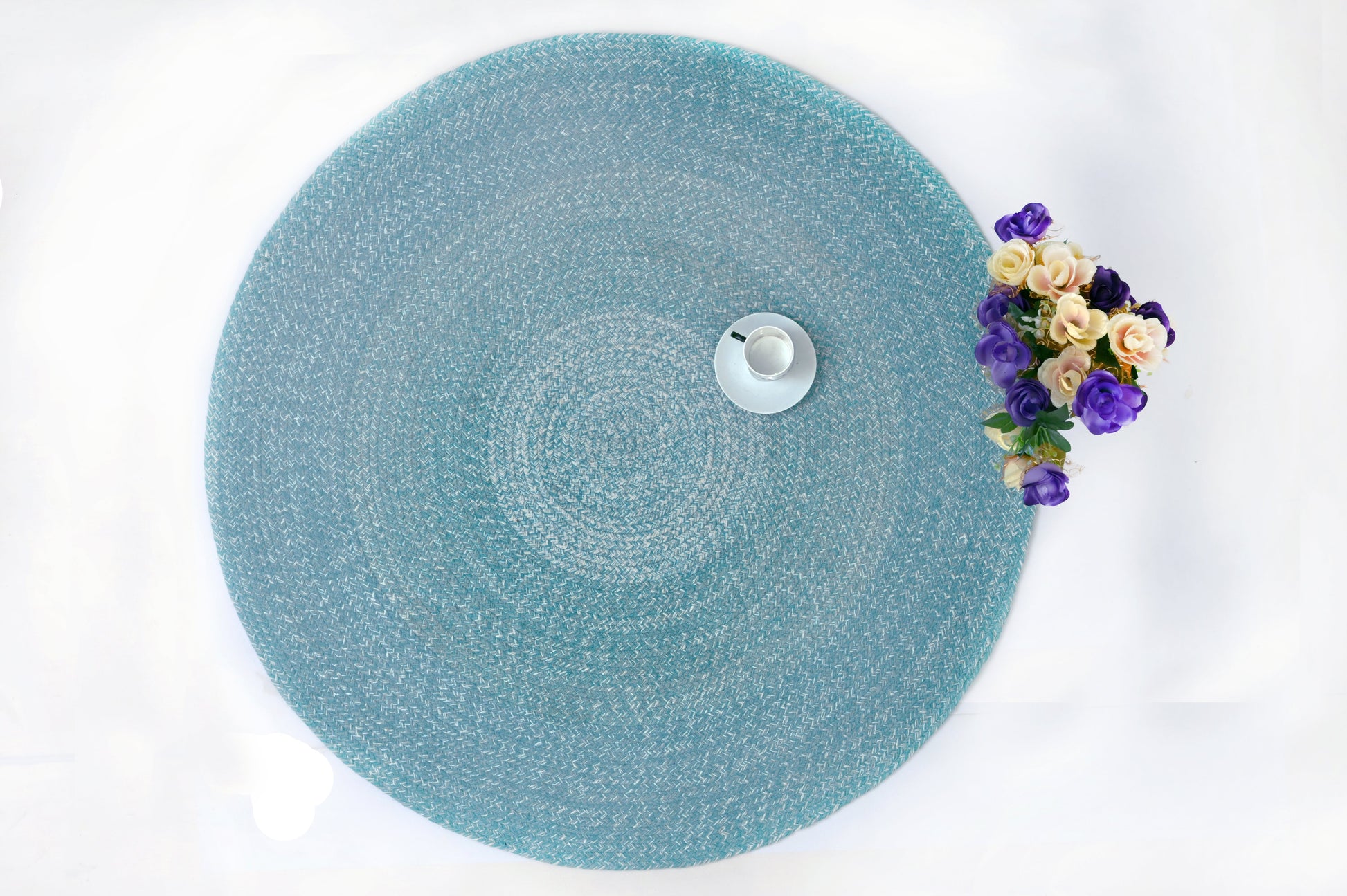 Alfombra de Playa Tejida a Mano Llama del Océano en Turquesa