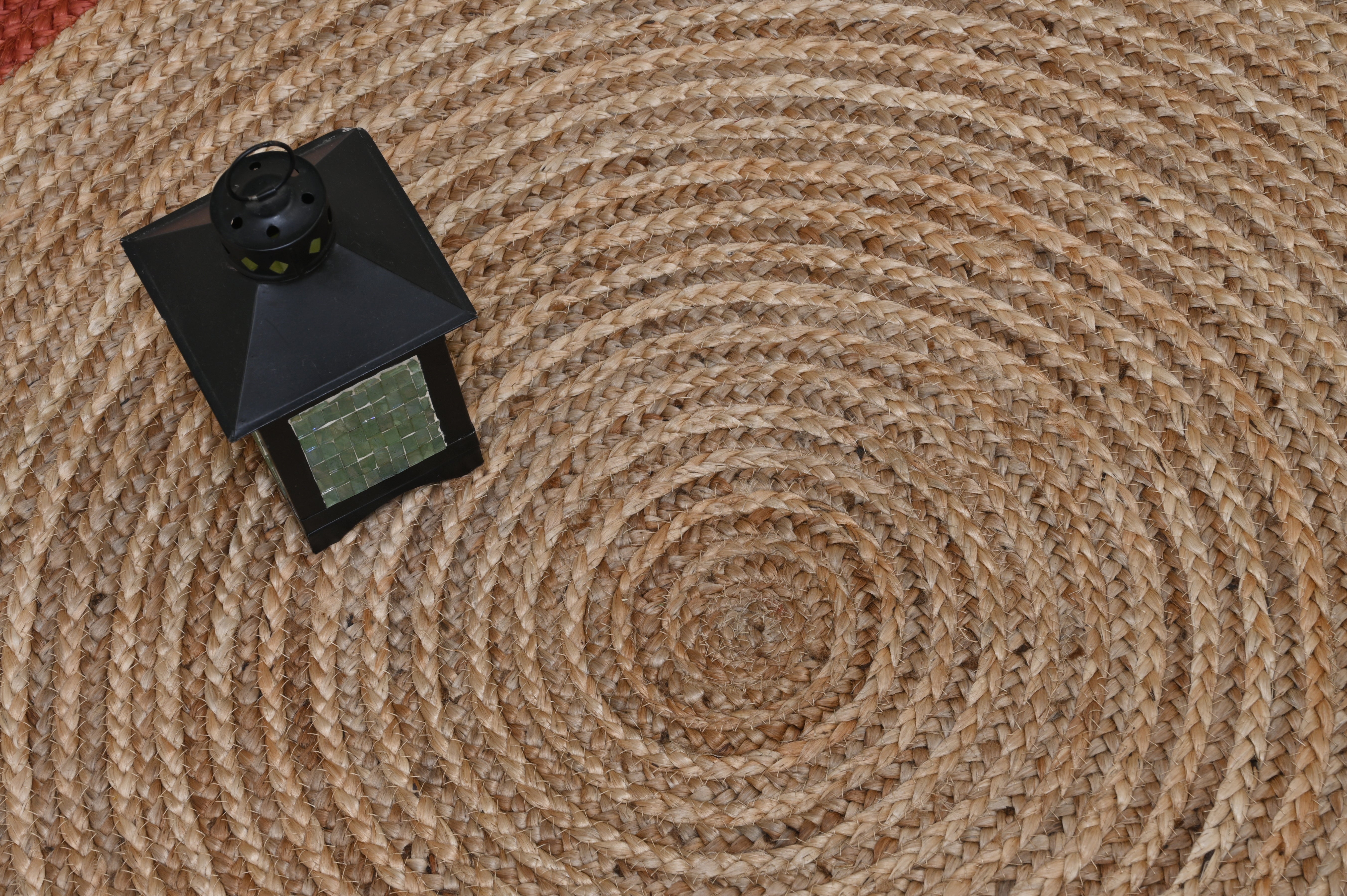 La Alfombra Redonda de Yute Natural Tejida a Mano encarna serenidad sostenible y artesanía auténtica. Cuidadosamente elaborada con yute 100% natural, esta alfombra celebra la sofisticación eco-chic y el compromiso con el cuidado ambiental.
