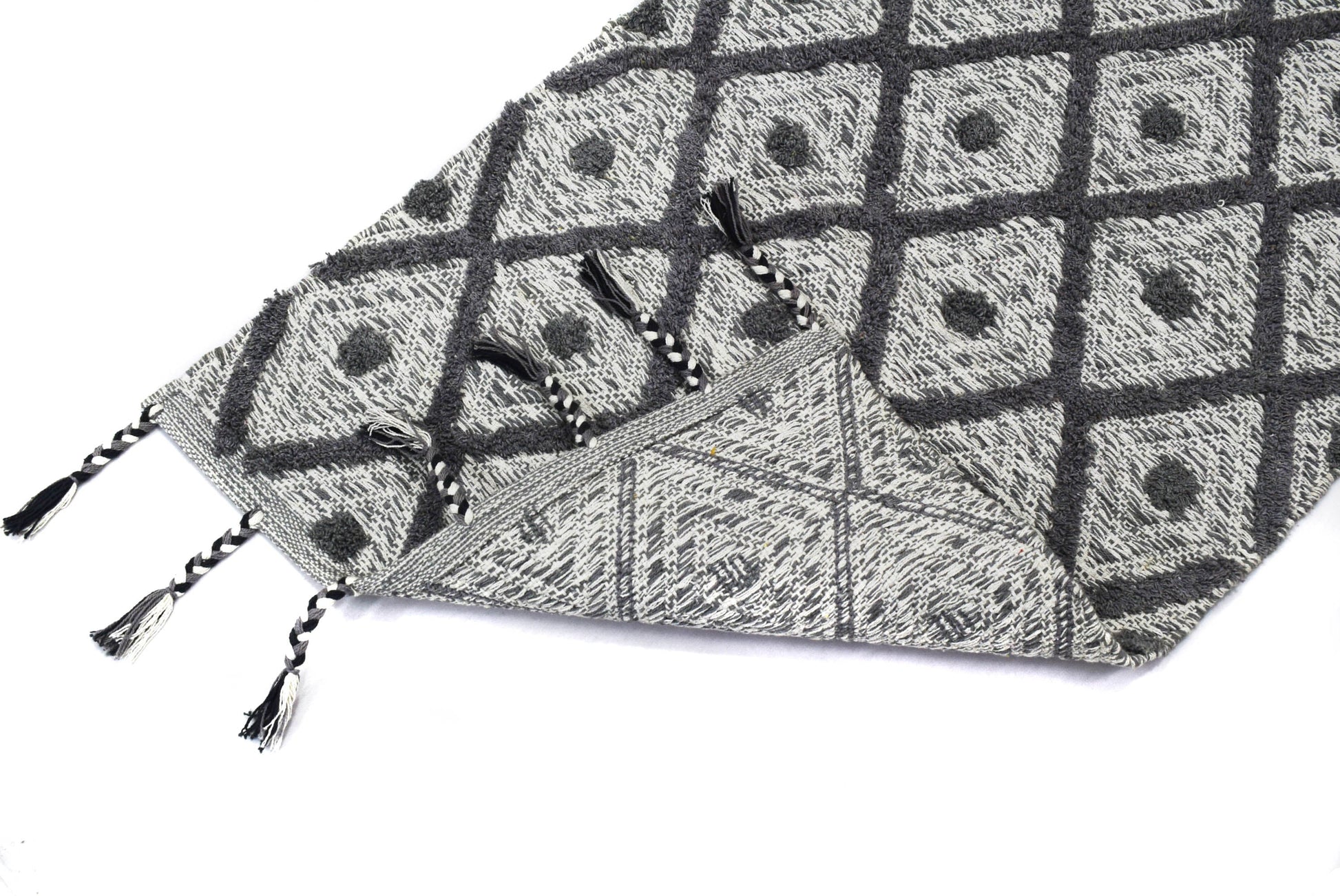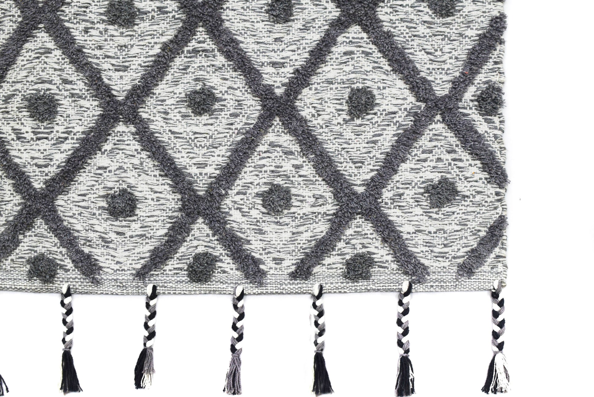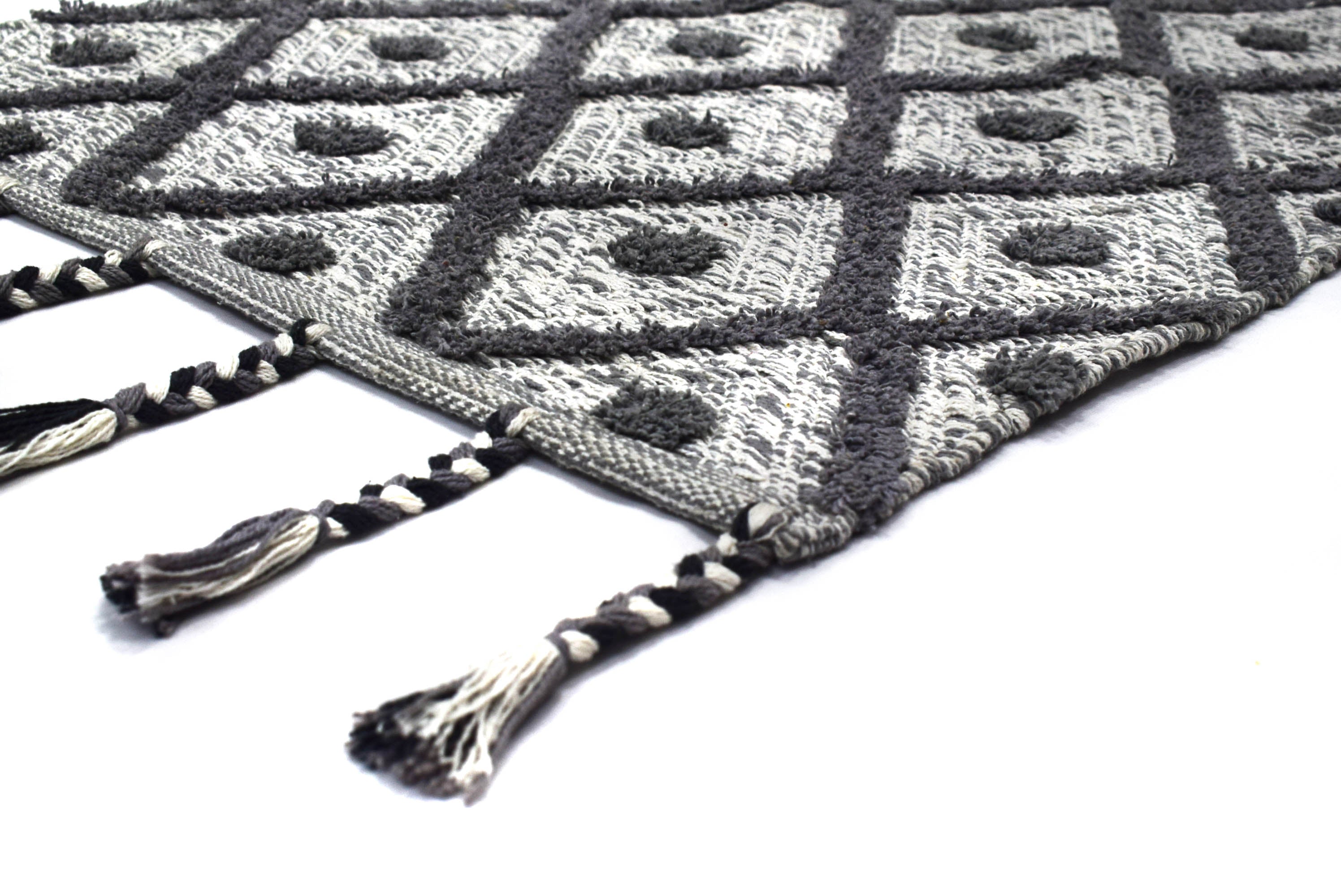 Alfombra de Algodón Shaggy – Patrón de Diamante con Flecos