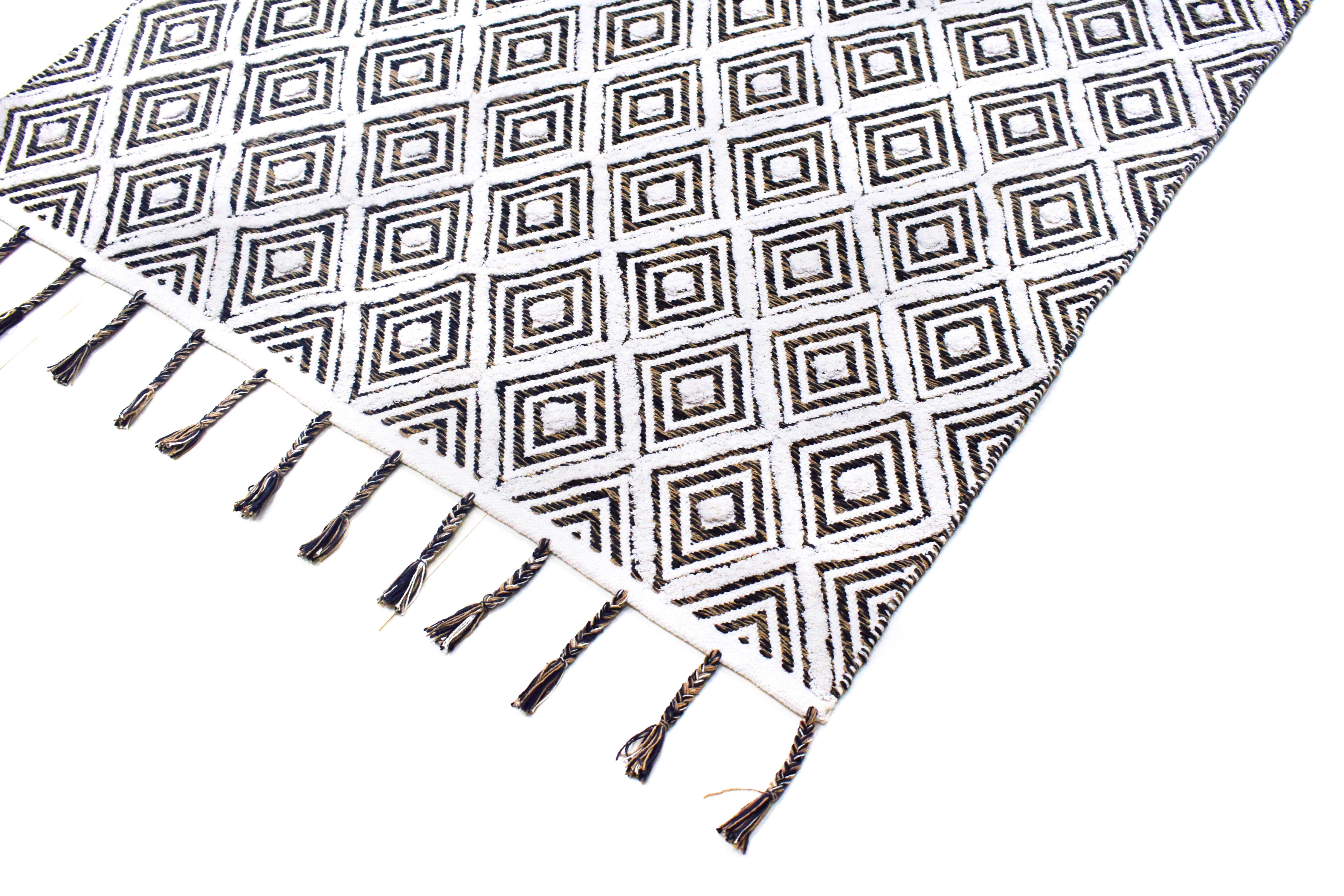 Alfombra de Algodón Shaggy – Patrón de Diamante con Flecos