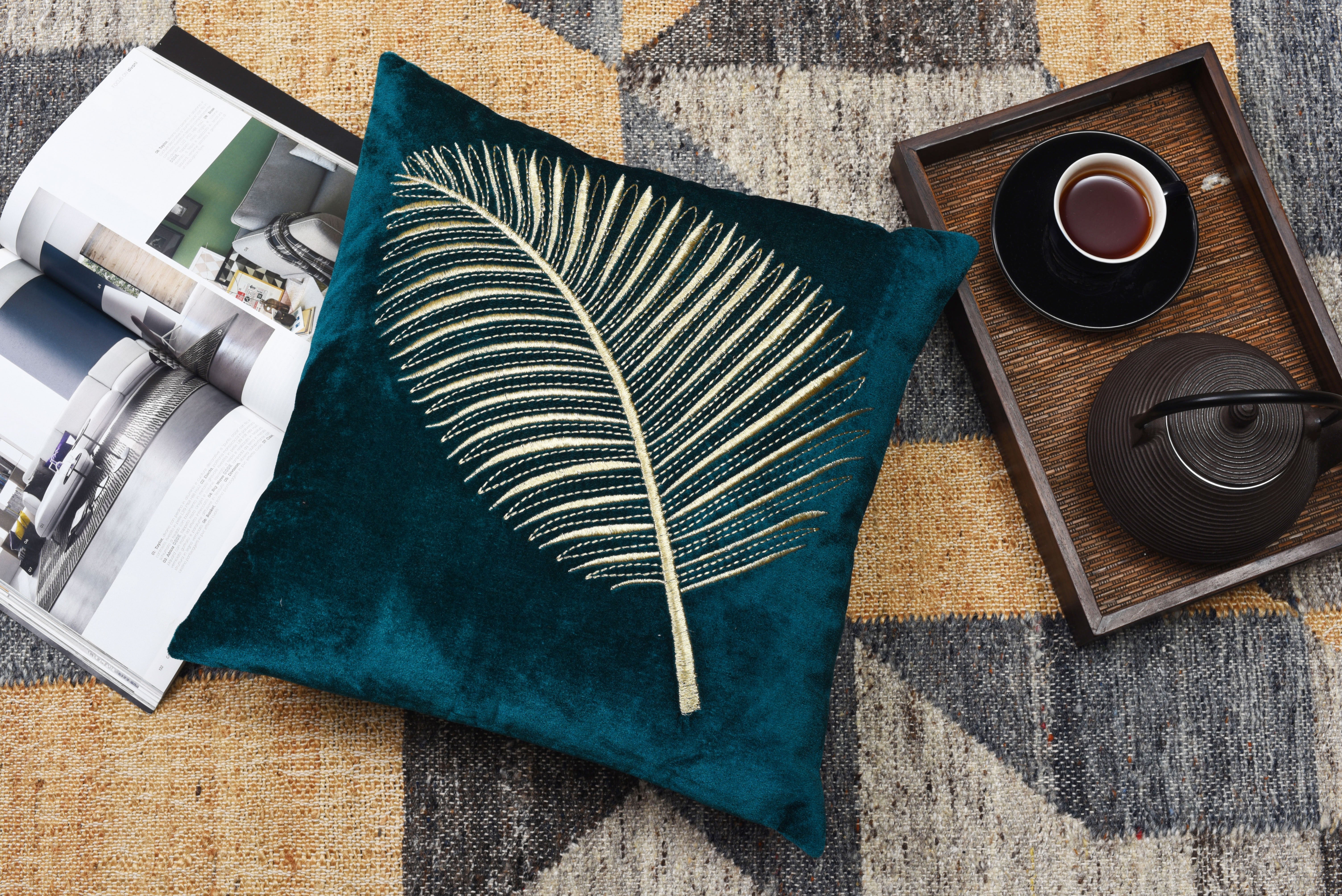 Funda de Cojín con Hojas