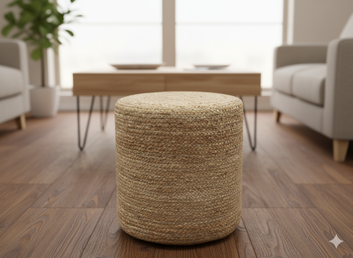 - 🌿 Puff de yute natural trenzado a mano