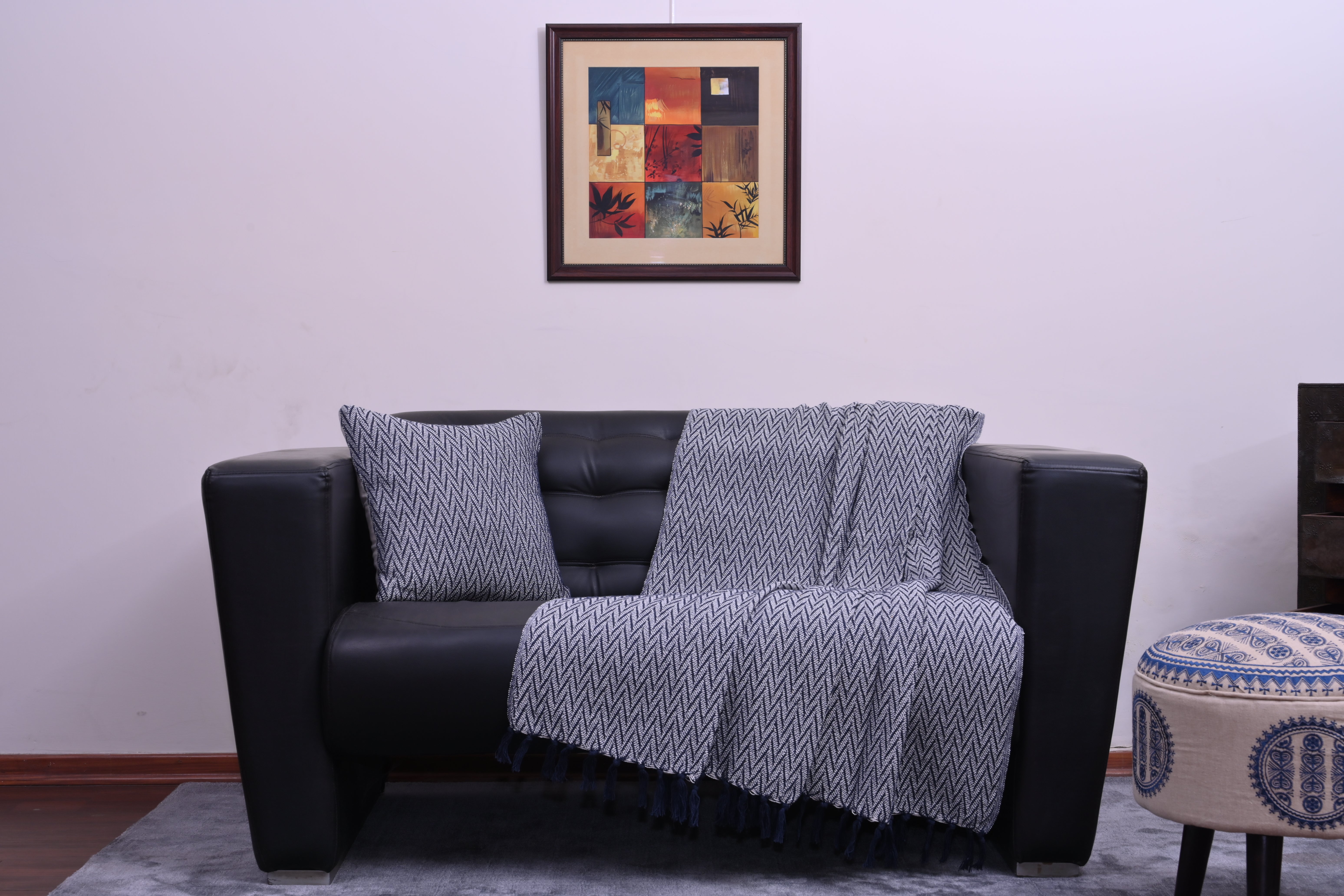 Set de Manta y 2 Cojines de Algodón Tejida a Mano