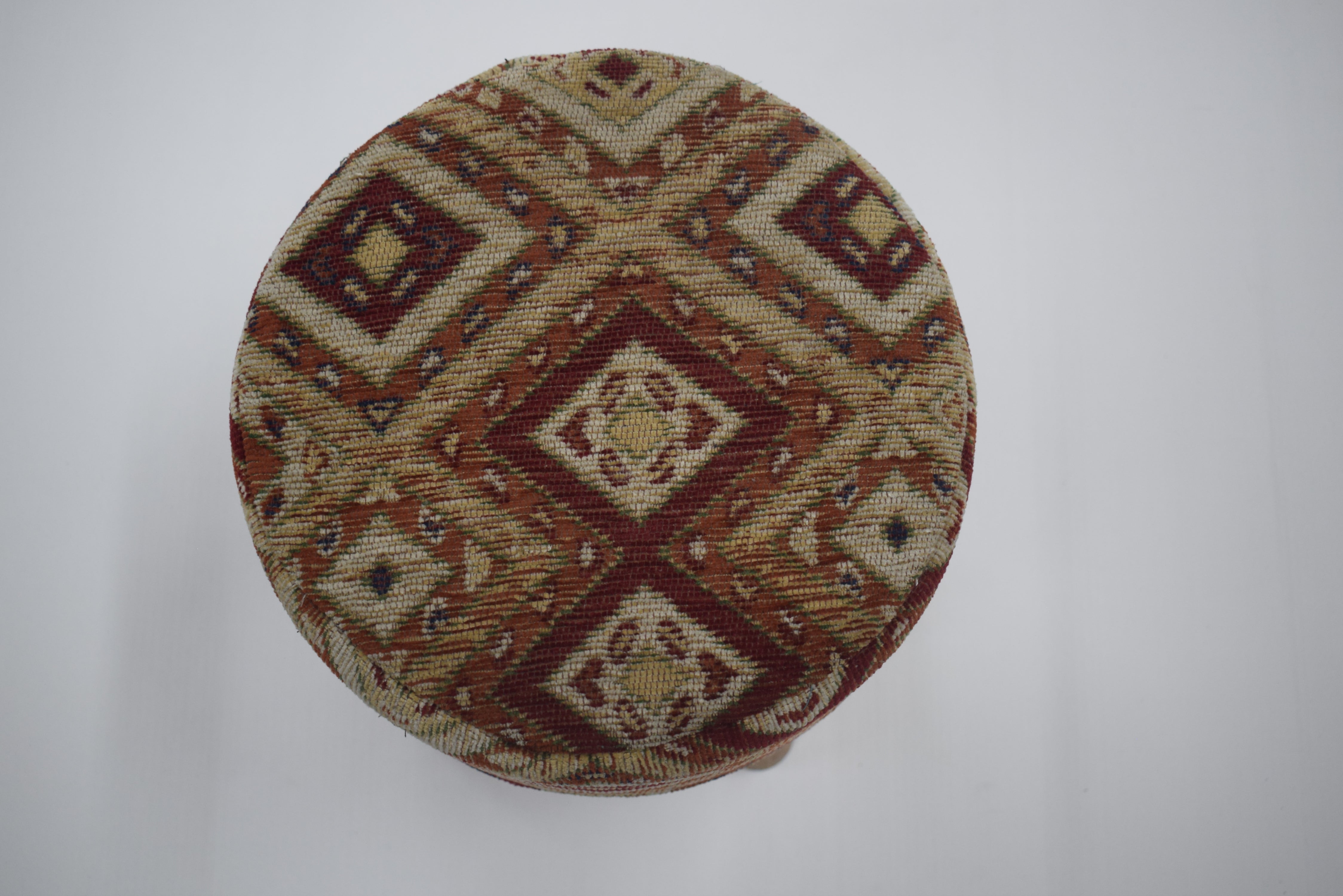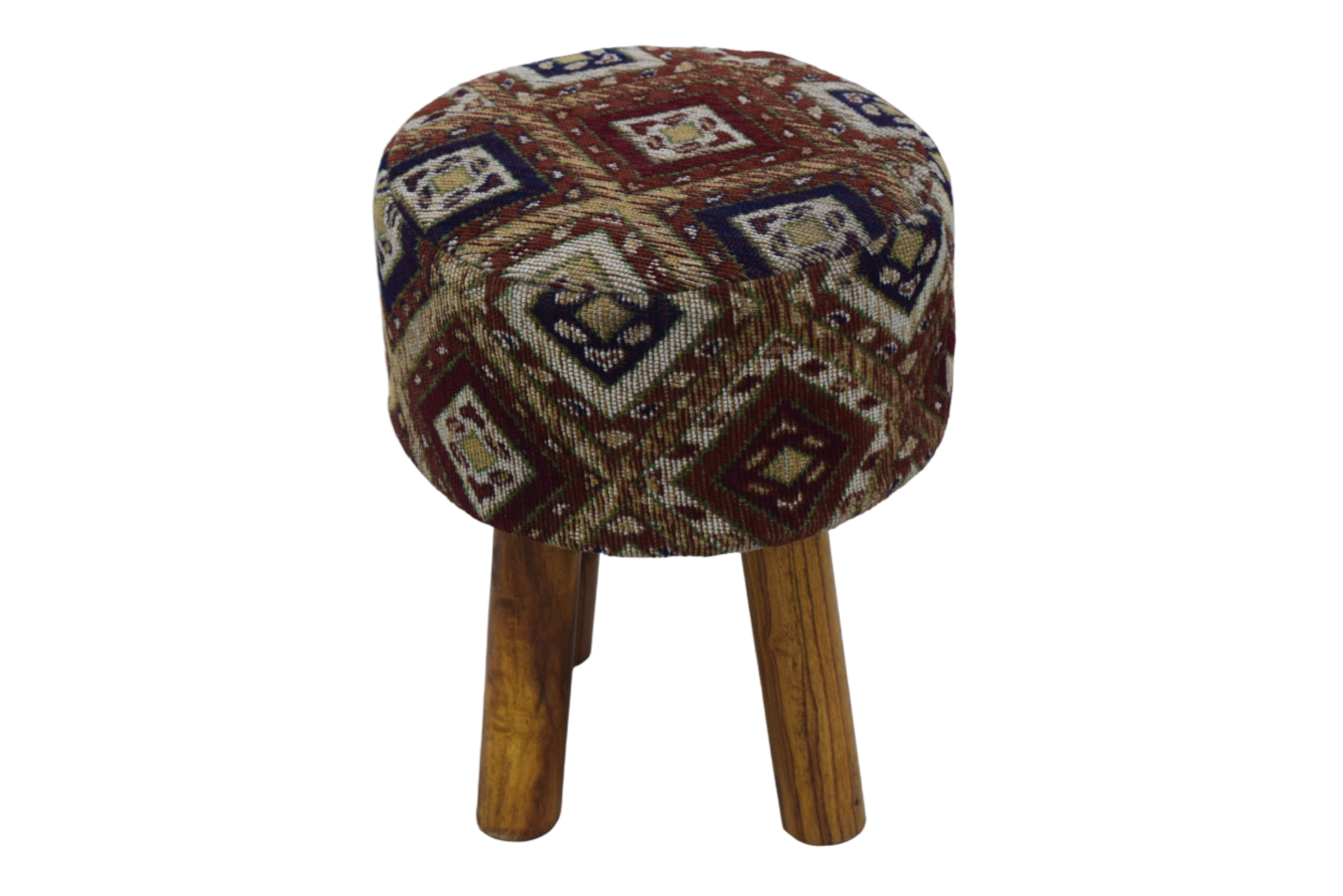 Taburete Jacquard Geométrico Multicolor Tejido a Mano con Patas de Madera